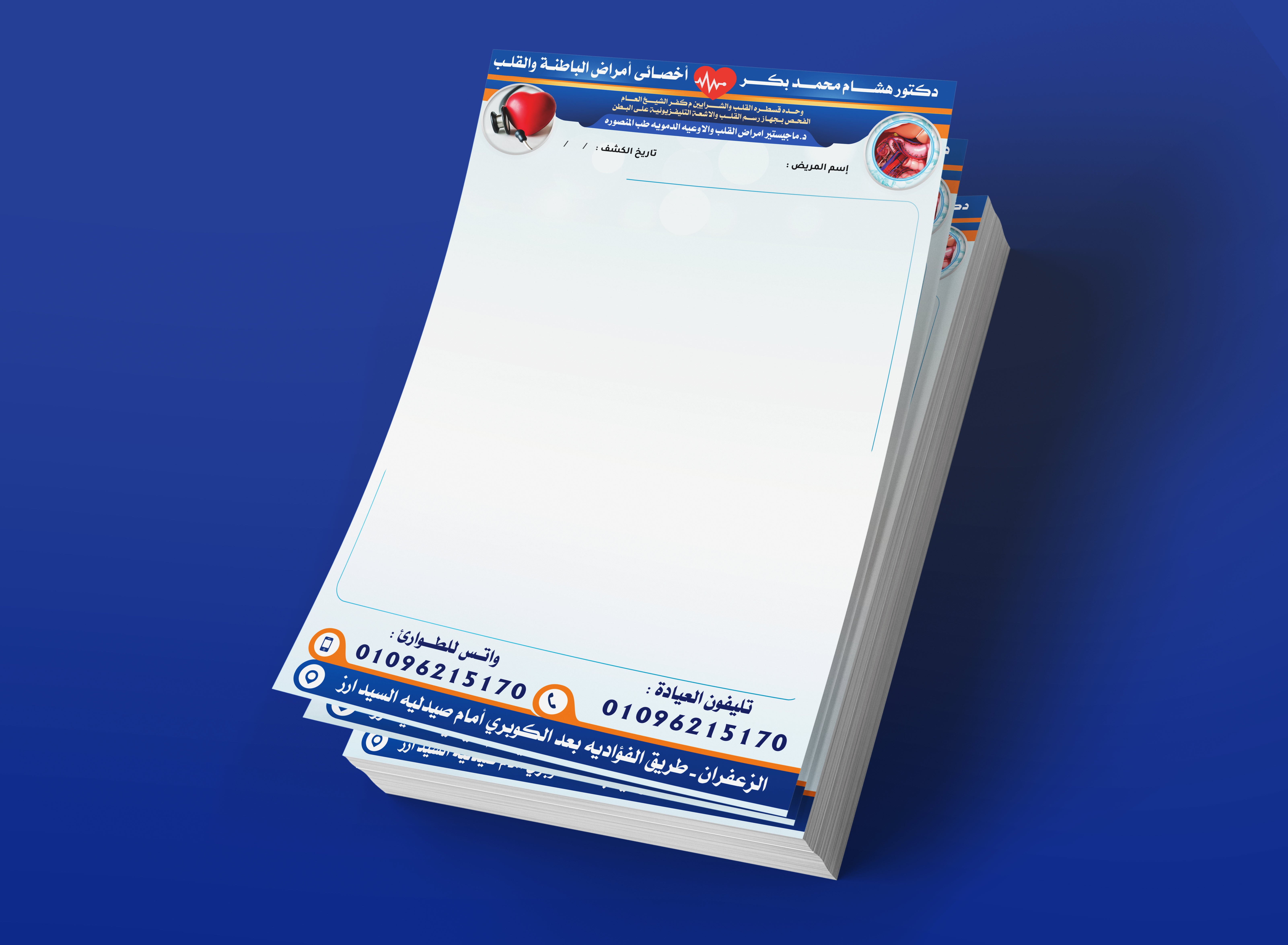 تصميم روشتة طبية طبيب امراض القلب باللون الازرق