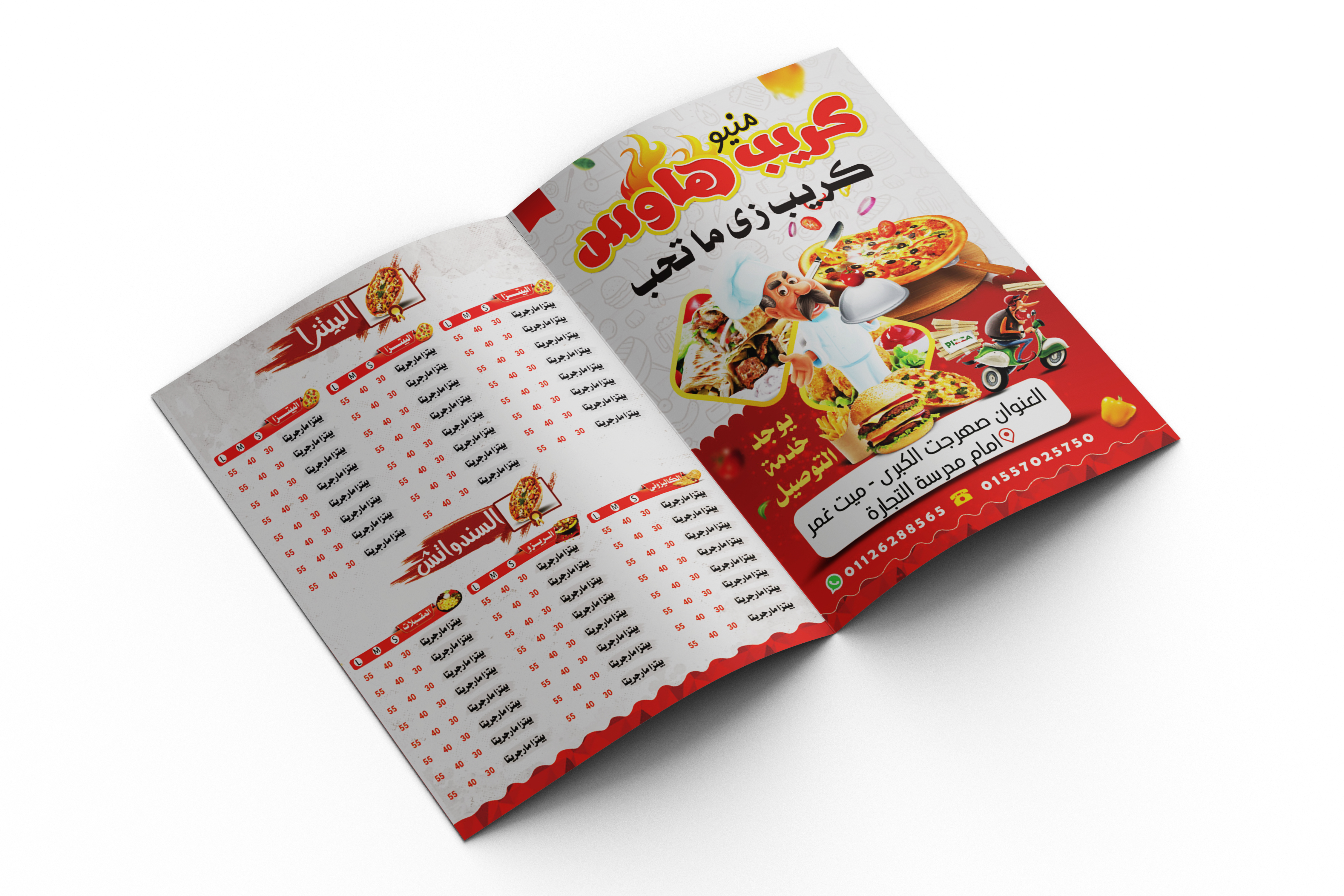 تصميم منيو طعام مفتوح المصدر بيتزا وساندوتشات